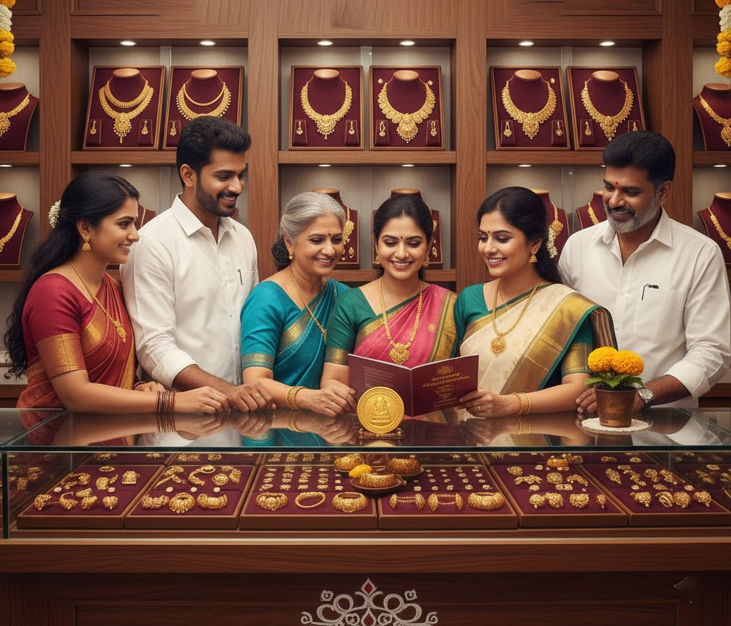 At the time of purchase, you can choose either weight-based calculation or rupee-based calculation — whichever gives you the best value. This protects you from gold rate fluctuations throughout the entire savings period.At Jothimani Jewellery, we bear the full value-addition charges on our entire range of gold jewellery.